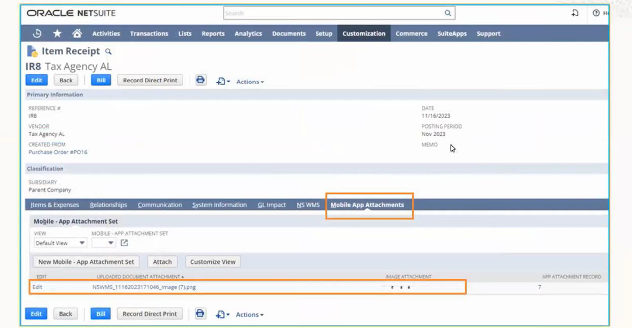 Now, through SCM Mobile app, you can add attachments to transactions by capturing an image or uploading an image or document file. It saves the image or document to the file cabinet and attaches them to a reference transaction (either a sales or purchase order).